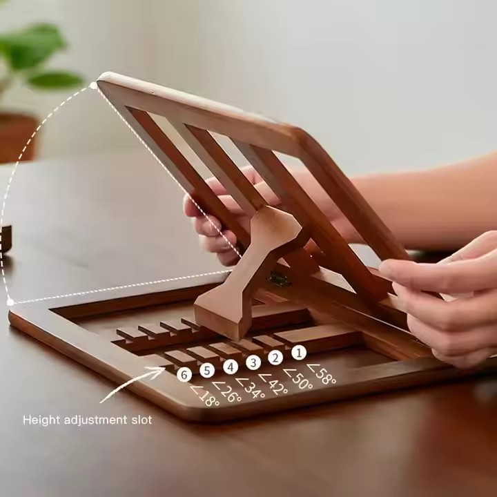 Bamboo Laptop Stand, Tablet Stand Book with Angle Adjustable, Foldable Page Holders Desktop for Cookbook Reading Music Document
