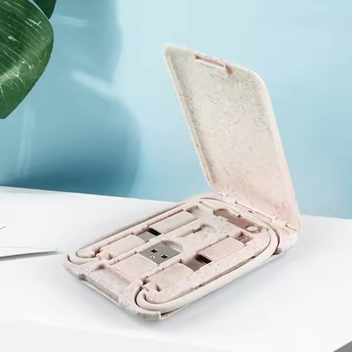 Multi Functional 60W Travel 6 in 1 Bamboo Storage Box OTG Adapter Data Cable Fast Magnetic Charging Card USB Cable Data Cable